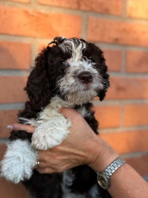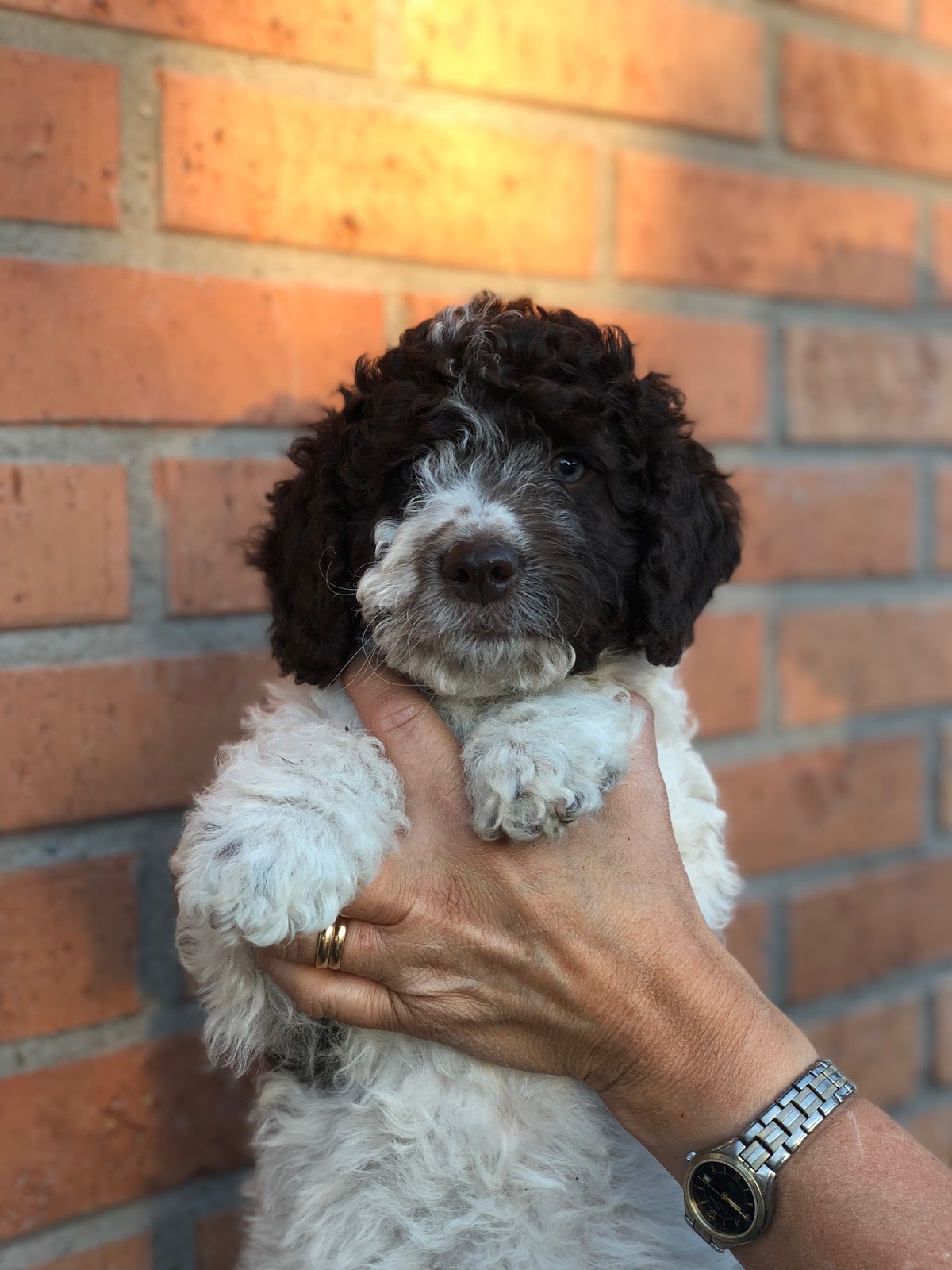 5 tikar och 4 hanar, födda 2018-04-07, alla brun/vita.