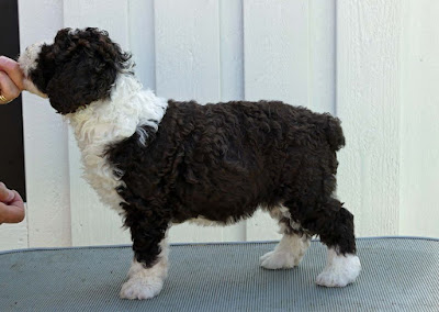 Brun och vit hane med kort svans